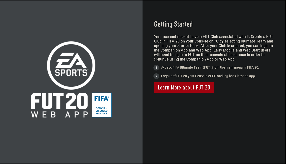 Soweit so gut aber nun kann ich die Web App immer noch nicht nutzen diesmal mit der Meldung ich müsste FIFA 20 erst kaufen um die Web App nutzen zu können.
